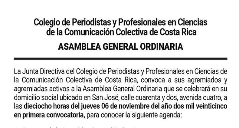 Junta Directiva Colper convoca a su Asamblea General Ordinaria