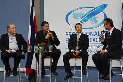 Durante poco más de una hora los comunicadores Danny González, Luis Sáenz y Tomás Zamora hablaron desde su experiencia sobre los riesgos que deben enfrentar los profesionales encargados de reportear la noticia en lugares en donde se desarrollan conflictos armados.