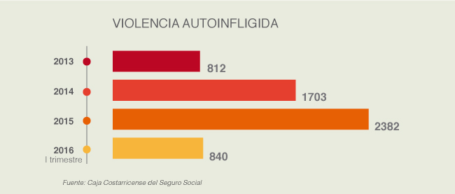 En el primer trimestre el año la Caja Costarricense de Seguro Social (CCSS) atendió 840 casos de personas que se ocasionaron daño a sí mismas. Seis de cada diez casos registrados corresponden a mujeres y el grupo etario para ambos sexos es entre los 20 y los 29 años de edad.