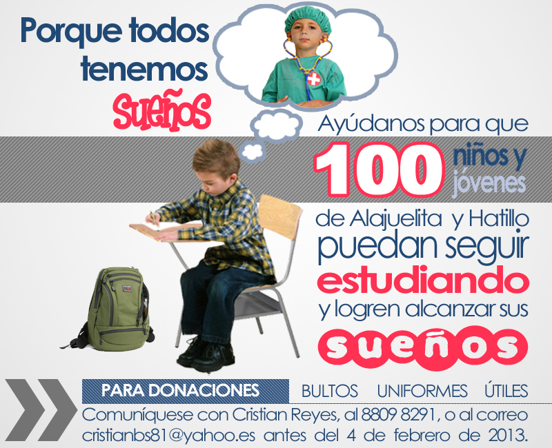 | Jueves 31 de Enero, 2013| COLEGIADO RECOLECTA ÚTILES PARA AYUDAR A ESCOLARES Juan José Arce Vargas [email protected] El periodista Cristian Reyes solicita la ayuda a los colegiados para apoyar con útiles escolares a los niños y jóvenes de Alajuelita y Hatillos.