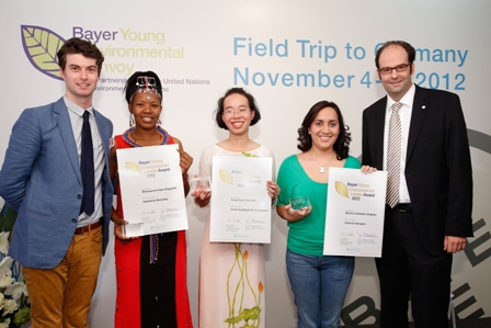 Maurice Odera, de la Unidad de Superación del PNUMA y miembro del jurado comentó: "las tres ganadoras del Premio Bayer al Joven Líder Ambiental demuestran cómo los jóvenes pueden hacer una diferencia e inspirar a otras personas en sus comunidades, ellos emprenden acciones con proyectos concretos que son sostenibles y pueden ampliarse".