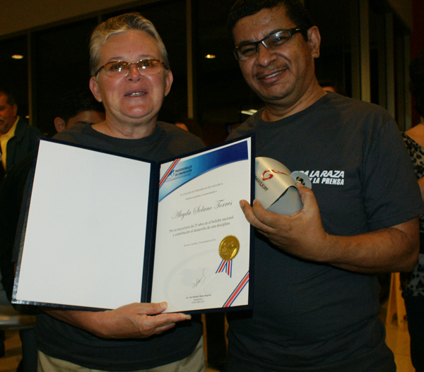 [email protected] El Colegio de Periodistas de Costa Rica realizó el Torneo La Raza y Prensa en el Bol Cariari dedicado a la colegiada Aleyda Solano Torres, en actividad organizada conjuntamente con el Bol Cariari por medio de su copropietario Arnoldo Pinto, Roberto Chávez, Director General del Torno Internacional La Raza y el colegiado Johnny Núñez. (Ver convenio Colper-Bol Cariari)