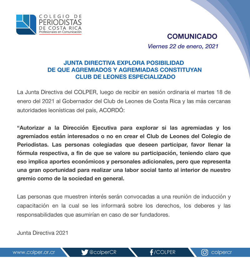 Junta Directiva explora la posibilidad de que agremiados y agremiadas constituyan Club de Leones especializado