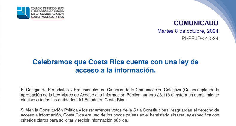 Colper celebra aprobación de Ley de Marco de Acceso a Información Pública