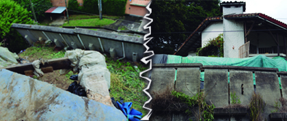 Un derrumbe ocasionado por las fuertes lluvias provocadas por el Huracán Mitch, en su devastador paso por Costa Rica en 1998, comprometieron las bases de la vivienda, e incluso una parte de la casa quedó sin soporte.