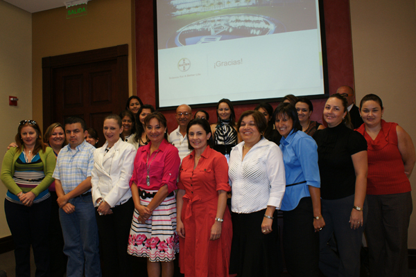 | Martes 5 de Febrero, 2013BAYER RECIBIÓ PROGRAMA DE OFICINAS DE COMUNICACIÓN COLPER Juan José Arce Vargas [email protected] La comunicación de Bayer integra tres áreas de negocios: “Cuidado de la Salud”, “Agrociencia” y “Materiales para la ciencia”, con base en sus valores, en inglés “LIFE” (vida en castellano que comprende el liderazgo, la flexibilidad, la integridad y la eficiencia) que enfoca todas las estrategias para la región de Centroamérica y El Caribe y 1938 colaboradores, explicó Ledezma.